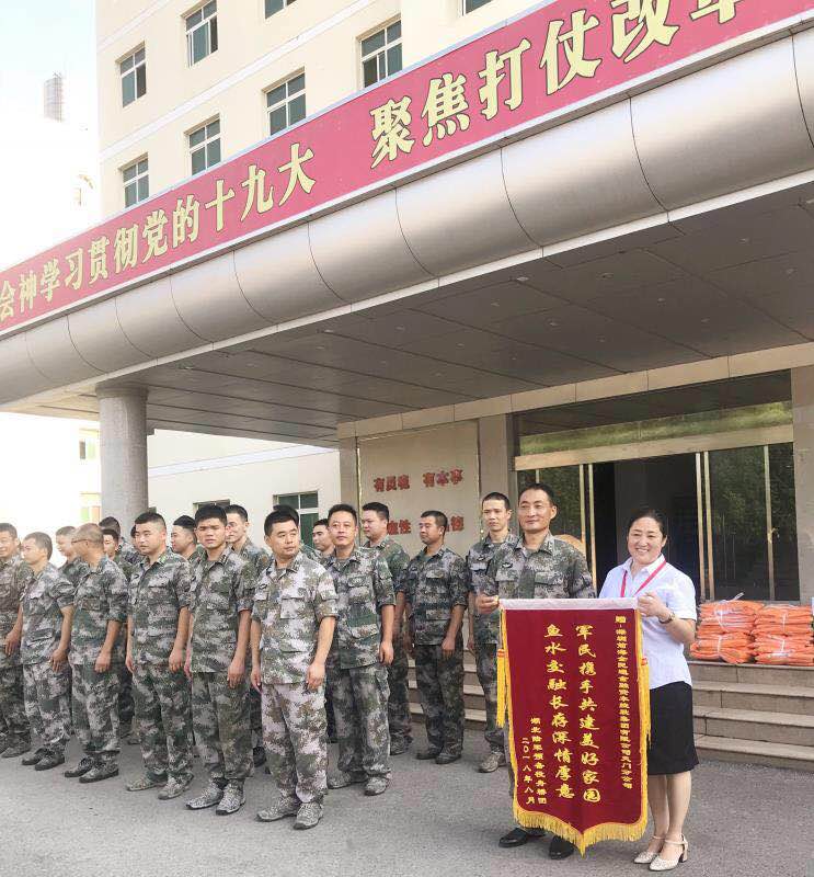 在中国人民解放军建军91周年到来之际,为发扬拥军优属的优良风尚,推动军民融合深度发展,为实现中国梦强军梦凝聚力量。7月30日,金年会天门地区干部员工在总经理杨华清的带领下,慰问了天门市舟桥团,并向坚守在工作岗位上的部队官兵们送去了防暑降温物资等。
